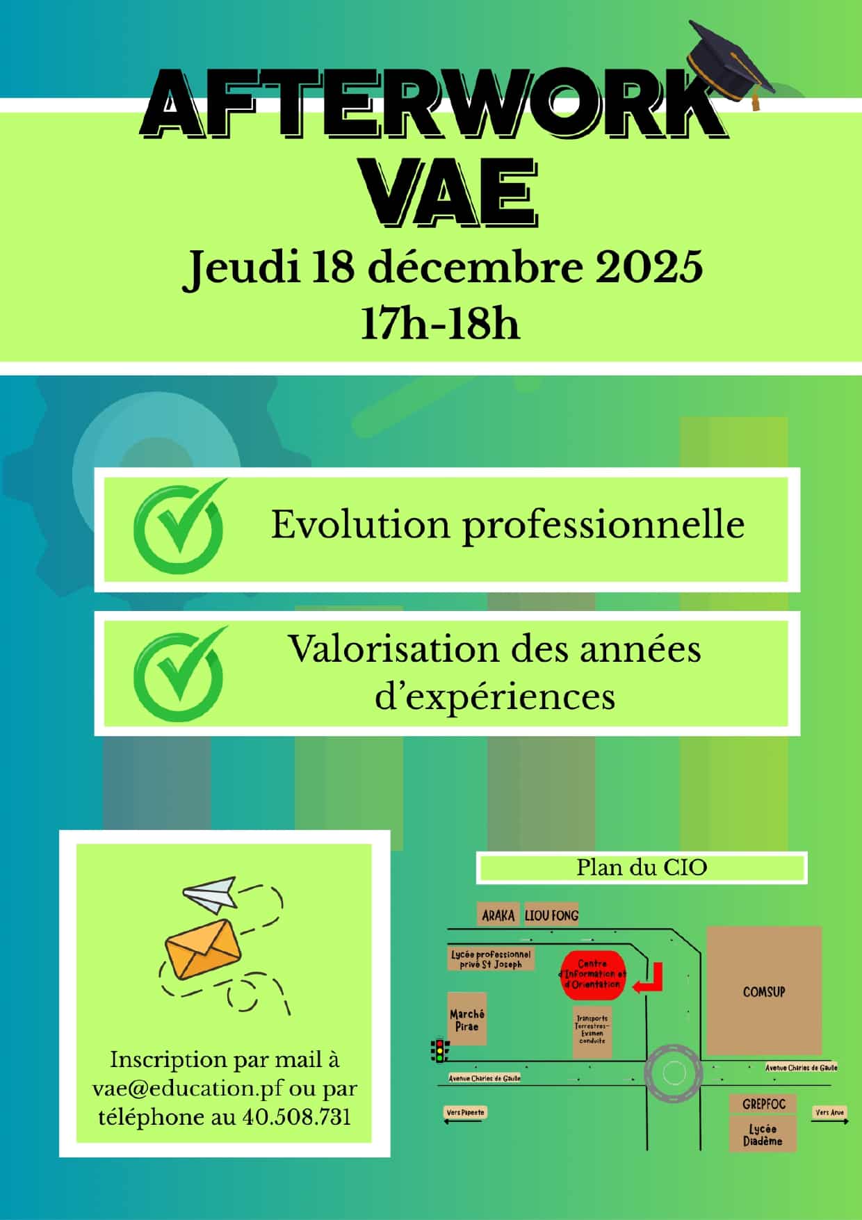La Validation des Acquis de l’Expérience (VAE) permet à toute personne engagée dans la vie active de faire reconnaître officiellement son expérience professionnelle. Dans le cadre de son accompagnement, nous organisons un afterwork dédié à la VAE.